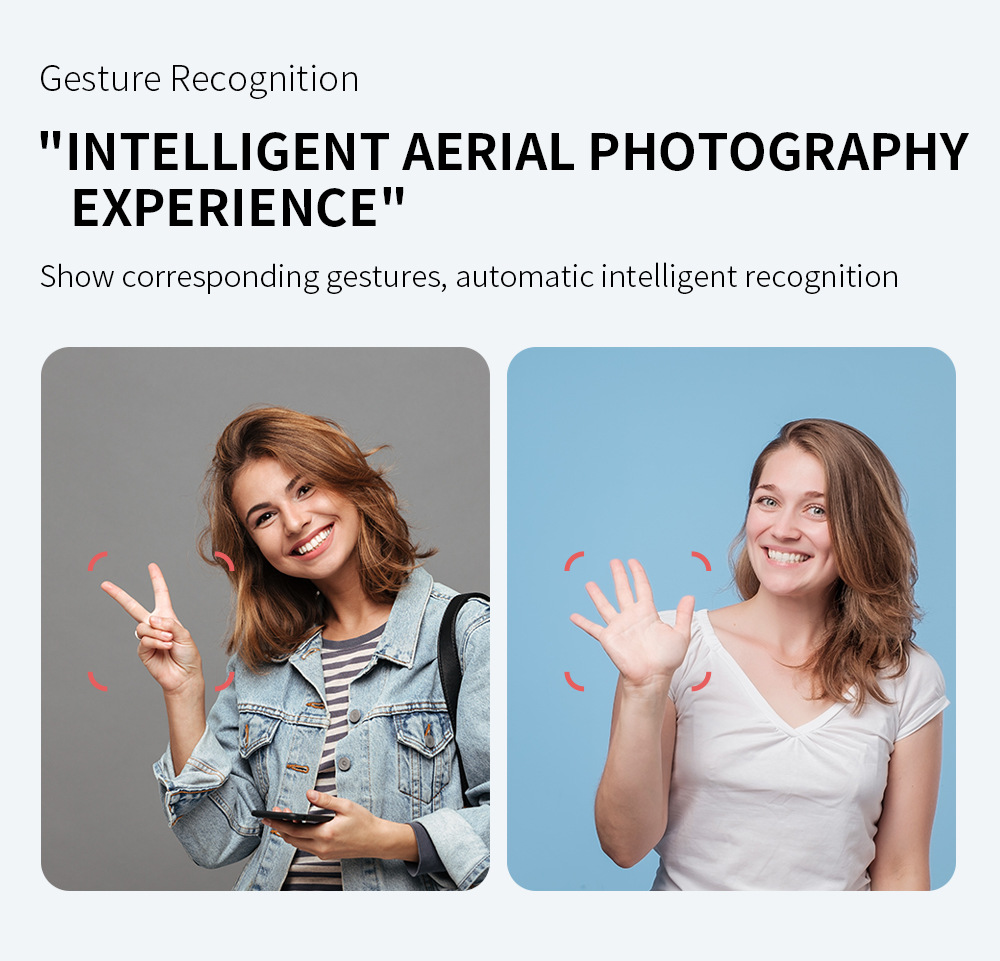 3. Gesture shooting recognition: within 1-3m away from the aircraft, make a photo gesture/camera gesture in front of the camera
