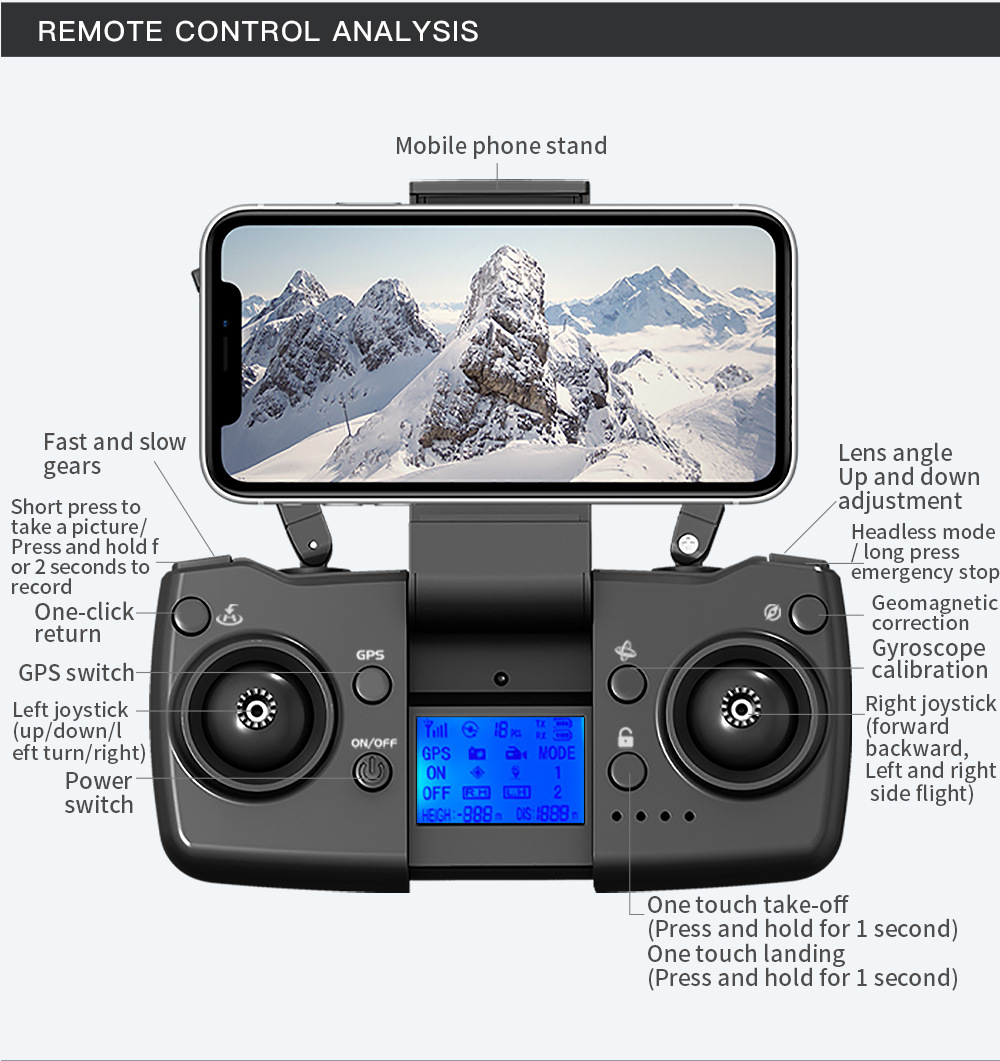 1.GPS returns to the take-off point with one key, returns with low power, and returns home without signal