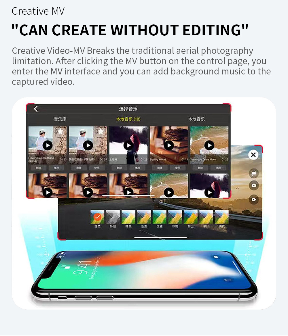 2. (1) GPS intelligent tracking; (2) Image following: Identify the subject and automatically follow the flight