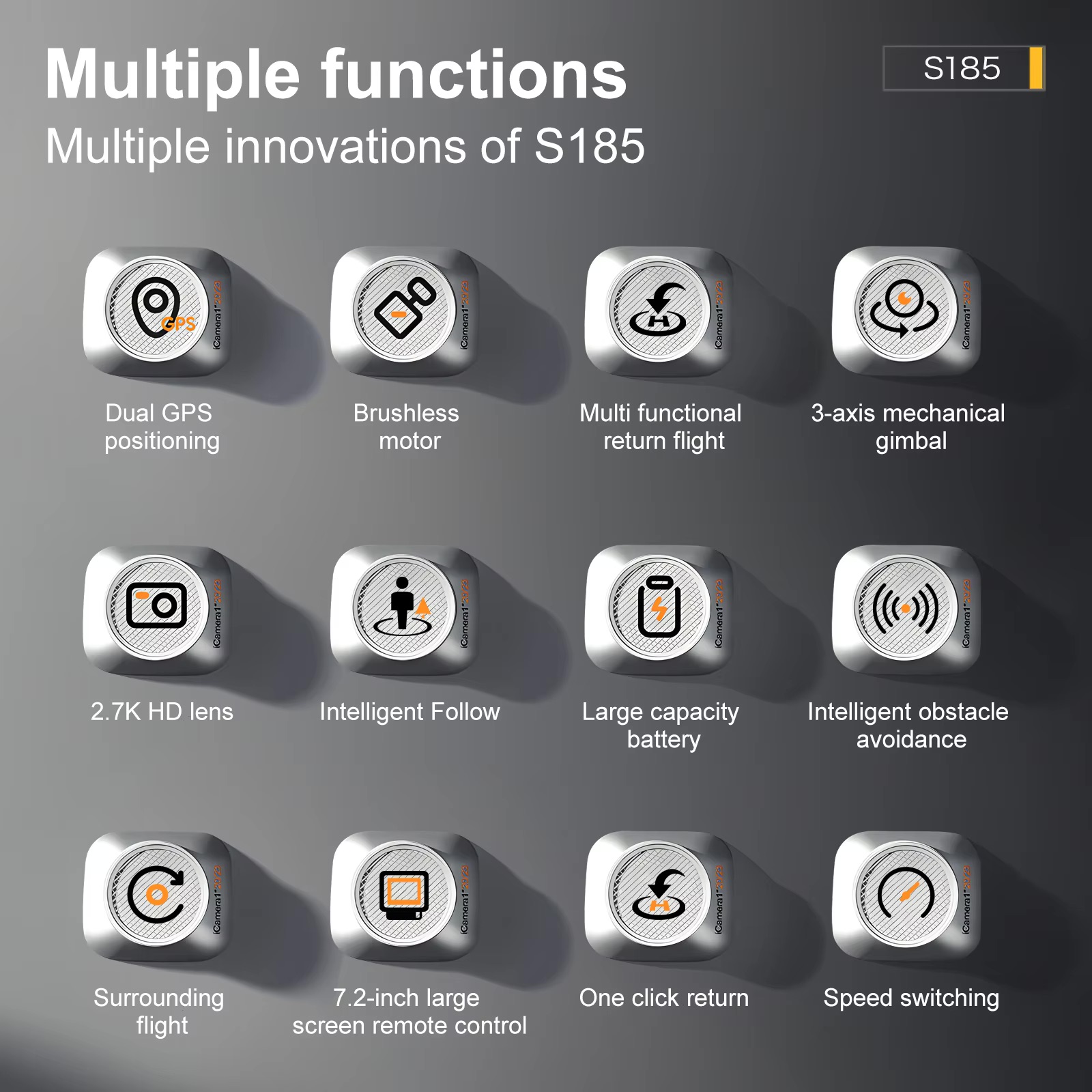 emergency stop, trajectory flight, one-click surround, intelligent follow, add music,