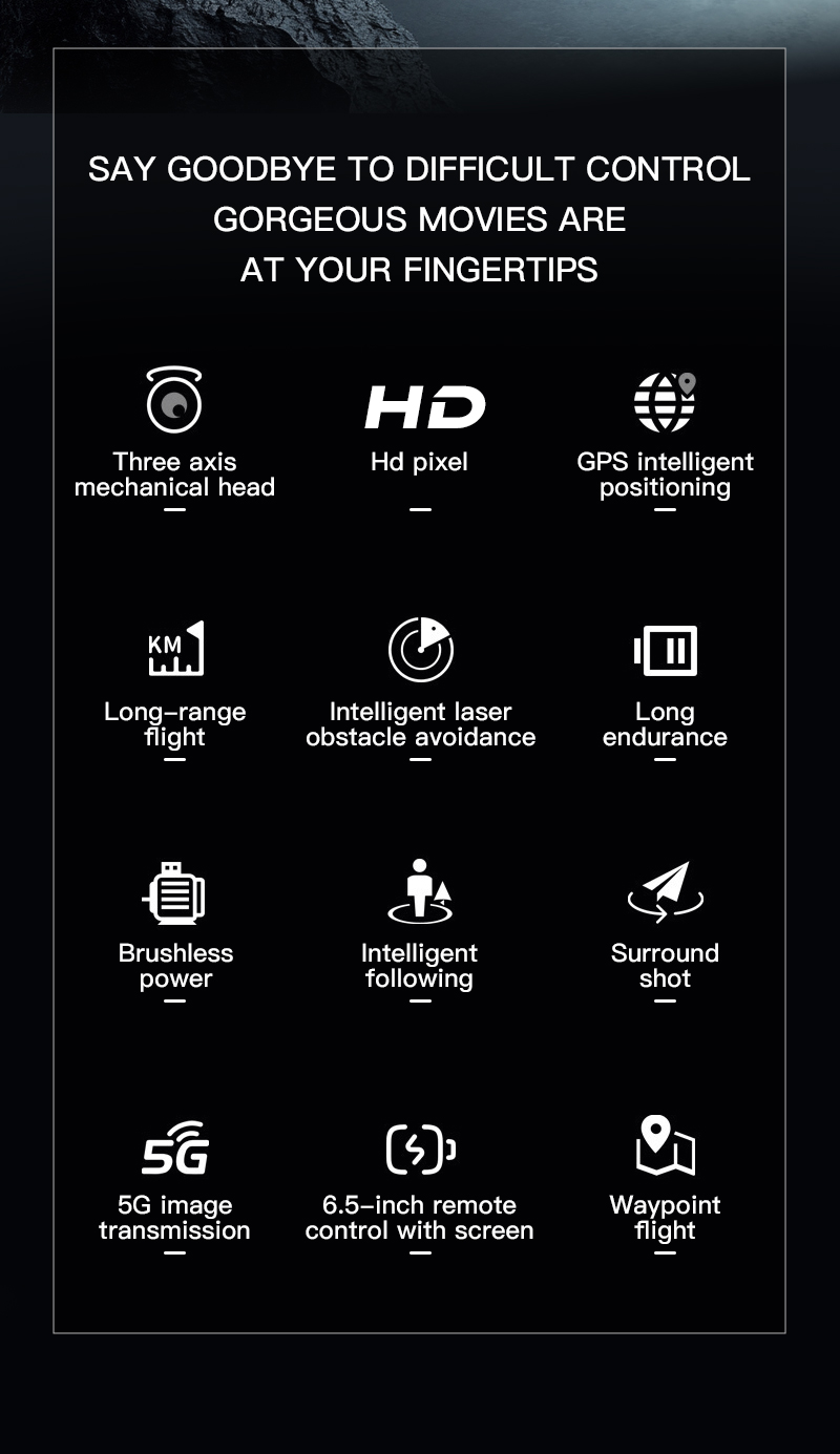 1. GPS returns to the take-off point with one key, returns with low power, and returns home without signal.
